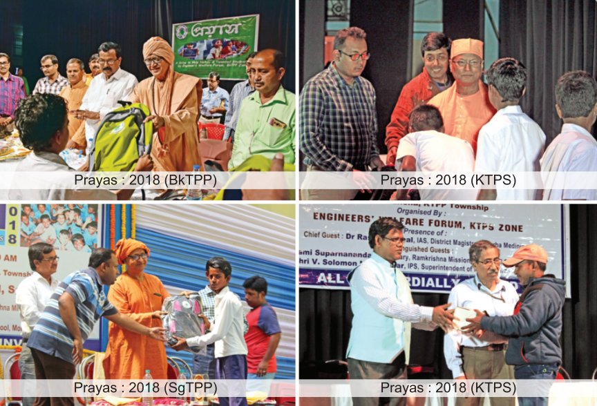Prayas, the flagship social event of the EWF,is an effort through which a total of five hundred under privileged but meritorious school students residing around WBPDCL’s power stations are felicitated every year with school bags and year long supply of study kits. This is an initiative which also aims to nurture and fulfill the social obligations of our engineers. Further, such events help to develop a cordial relation with the underprivileged local people at various power stations. An amount of Rupees Fifty Thousand had been donated to Chief Minister’s Relief Fund for Nepal Disaster.